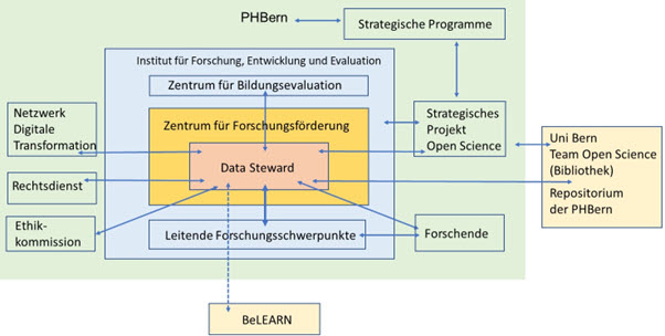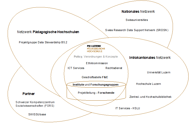 Das Projekt wurde von 31 Partnerinstitutionen getragen und von der Universität Bern als Leading House gemeinsam mit der Universität Basel geleitet. Das Ziel war der Aufbau und die Etablierung einer schweizweiten, möglichst inklusiven, Community für den Forschungsdatenmanagement-Support (FDM-Support), an der alle öffentlichen Hochschul- und Forschungsinstitutionen teilnehmen können. Das Swiss Research Data Support Network (SRDSN) soll die Zusammenarbeit, den Wissensaustausch und die Entwicklung von Best Practices des FDM-Supports zwischen den relevanten Einrichtungen wie Bibliotheken, IT, Forschungsdiensten und Verwaltung fördern. Dafür wurde eine Netzwerkstruktur mit Operational Committee, Steering Committee und einem international besetzten Sounding Board geschaffen. Eine Governance mit Ethikkodex, Mitgliedschaftsregeln und einem Memorandum of Understanding wurde erarbeitet und mit dem Sounding Board abgestimmt. Zur Sichtbarkeit und Zusammenarbeit wurden eine Website sowie ein digitaler Arbeitsbereich eingerichtet. Das Netzwerk trifft sich zweimal jährlich. Zudem entstanden zwei spezialisierte Nodes für Data-Stewardship-Koordinator:innen und den Umgang mit sensitiven Daten.