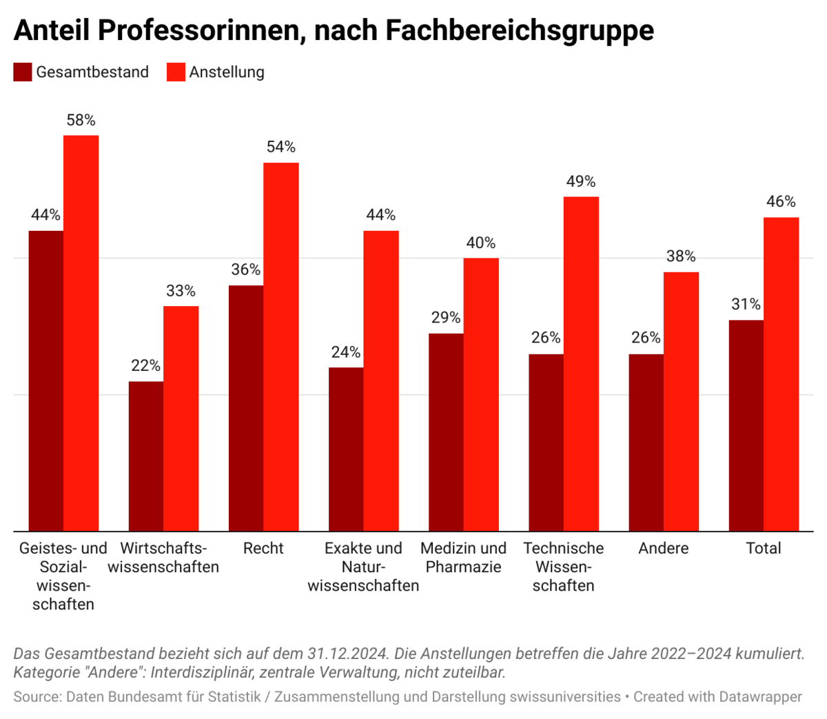 swissuniversities pubblica dati annuali sia sulla distribuzione per genere delle nuove assunzioni a livello di professoresse o professori nelle università sia sulla proporzione totale di professoresse in queste istituzioni. Queste cifre servono come base per le discussioni strategiche della Camera delle università.